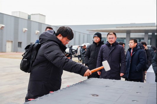 而除了可以親眼見證的硬核實驗,紅旗天工還把自家產(chǎn)品的眾多部件拆出來,設(shè)立了十大互動體驗區(qū),包括液壓對比的車身防撞鋼梁、籠式車身撞擊、高溫煮材氣味驗證等等互動體驗,你甚至可以拎著一個大錘子直接去砸電池包,把車身安全、內(nèi)飾環(huán)保以及電池安全等各種方面打造成互動體驗,讓你實打?qū)嵉刂庇^感受到紅旗天工在安全性方面的硬核實力。